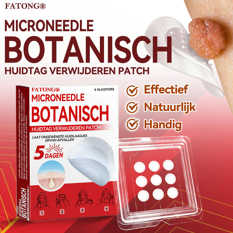 De 𝐅𝐀𝐓𝐎𝐍𝐆®𝐌𝐢𝐜𝐫𝐨𝐧𝐞𝐞𝐝𝐥𝐞 𝐁𝐨𝐭𝐚𝐧𝐢𝐬𝐜𝐡 𝐇𝐮𝐢𝐝𝐭𝐚𝐠 𝐕𝐞𝐫𝐰𝐢𝐣𝐝𝐞𝐫𝐞𝐧 𝐏𝐚𝐭𝐜𝐡 is een biologische micronaaldpleister die plantaardige ingrediënten diep in de huid brengt om huidflapjes , moedervlekken en wratten te verwijderen . Slechts één applicatie kan ervoor zorgen dat ongewenste huidflapjes binnen vijf dagen afvallen, wat het een effectieve behandeling maakt.